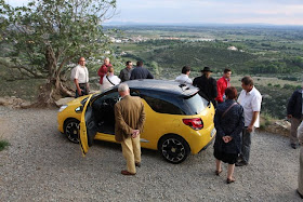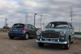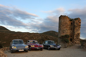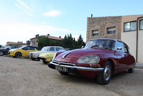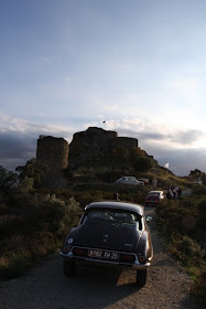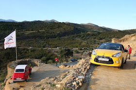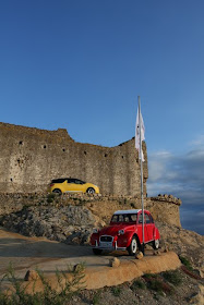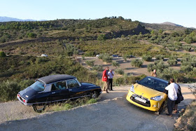 El mític 2 CV al costat d’un modern DS3 a la pujada del Castell de Quermançó.